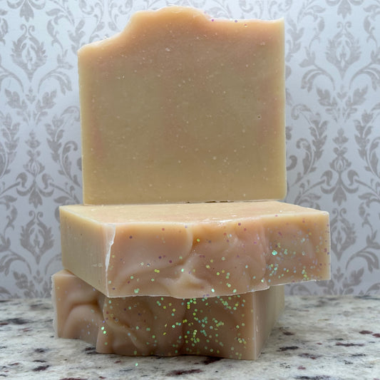 Our goat's milk soap is a luxurious blend designed to nourish and hydrate your skin. It provides essential vitamins and minerals for a moisturizing cleanse. The combination of coconut oil, palm oil, olive oil, and avocado oil ensures a rich lather while promoting softness and hydration. Castor oil adds an extra boost of moisture. This soap is perfect for everyday use. For best results, allow soap to dry between uses. Using a soap dish that allows for drainage is best.