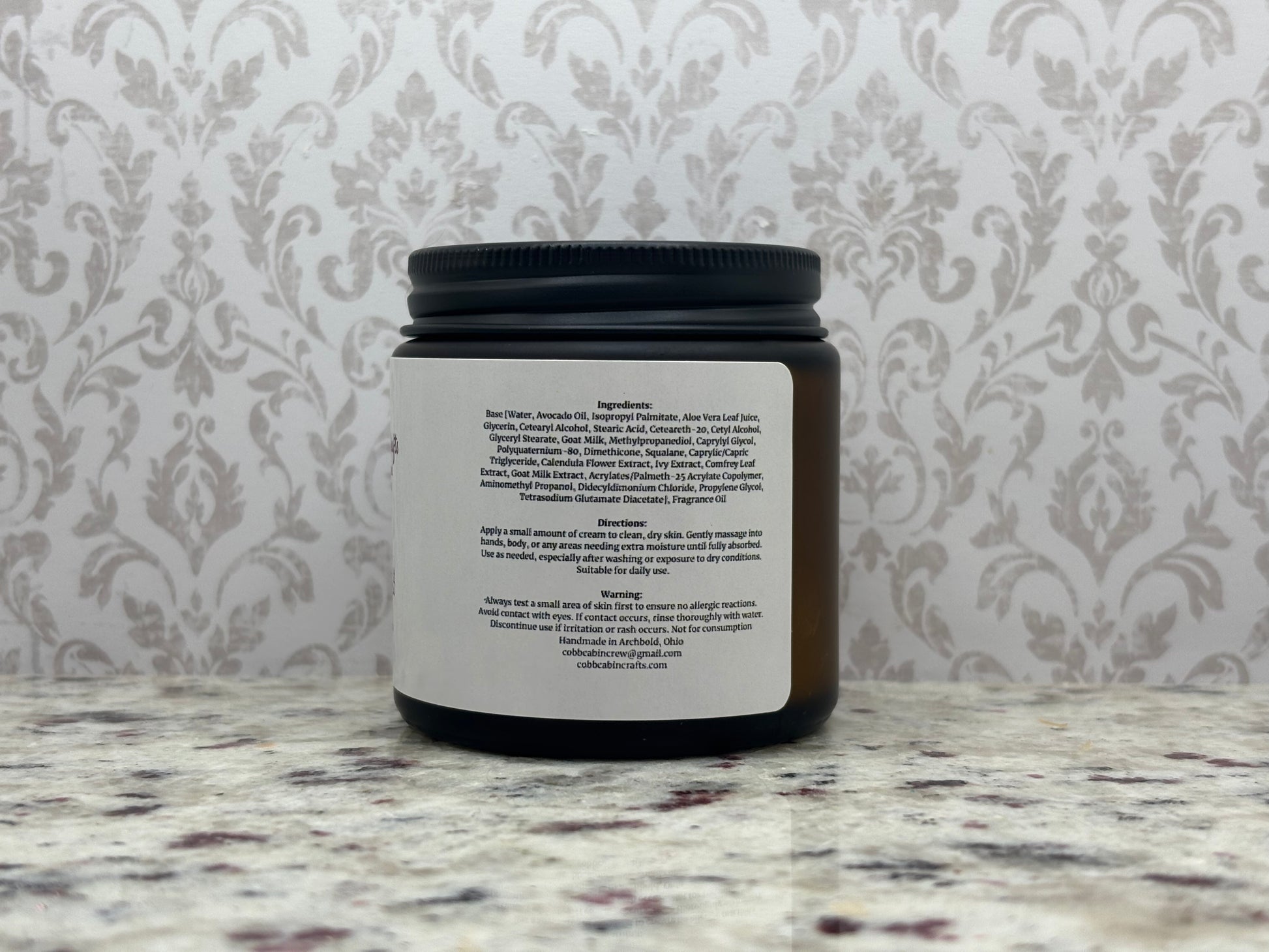 Ingredients: Base [Water, Avocado Oil, Isopropyl Palmitate, Aloe Vera Leaf Juice, Glycerin, Cetearyl Alcohol, Stearic Acid, Ceteareth-20, Cetyl Alcohol, Glyceryl Stearate, Goat Milk, Methylpropanediol, Caprylyl Glycol, Polyquaternium-80, Dimethicone, Squalane, Caprylic/Capric Triglyceride, Calendula Flower Extract, Ivy Extract, Comfrey Leaf Extract, Goat Milk Extract, Acrylates/Palmeth-25 Acrylate Copolymer, Aminomethyl Propanol, Didecyldimonium Chloride, Propylene Glycol, Tetrasodium Glutamate Diacetate], Fragrance Oil
