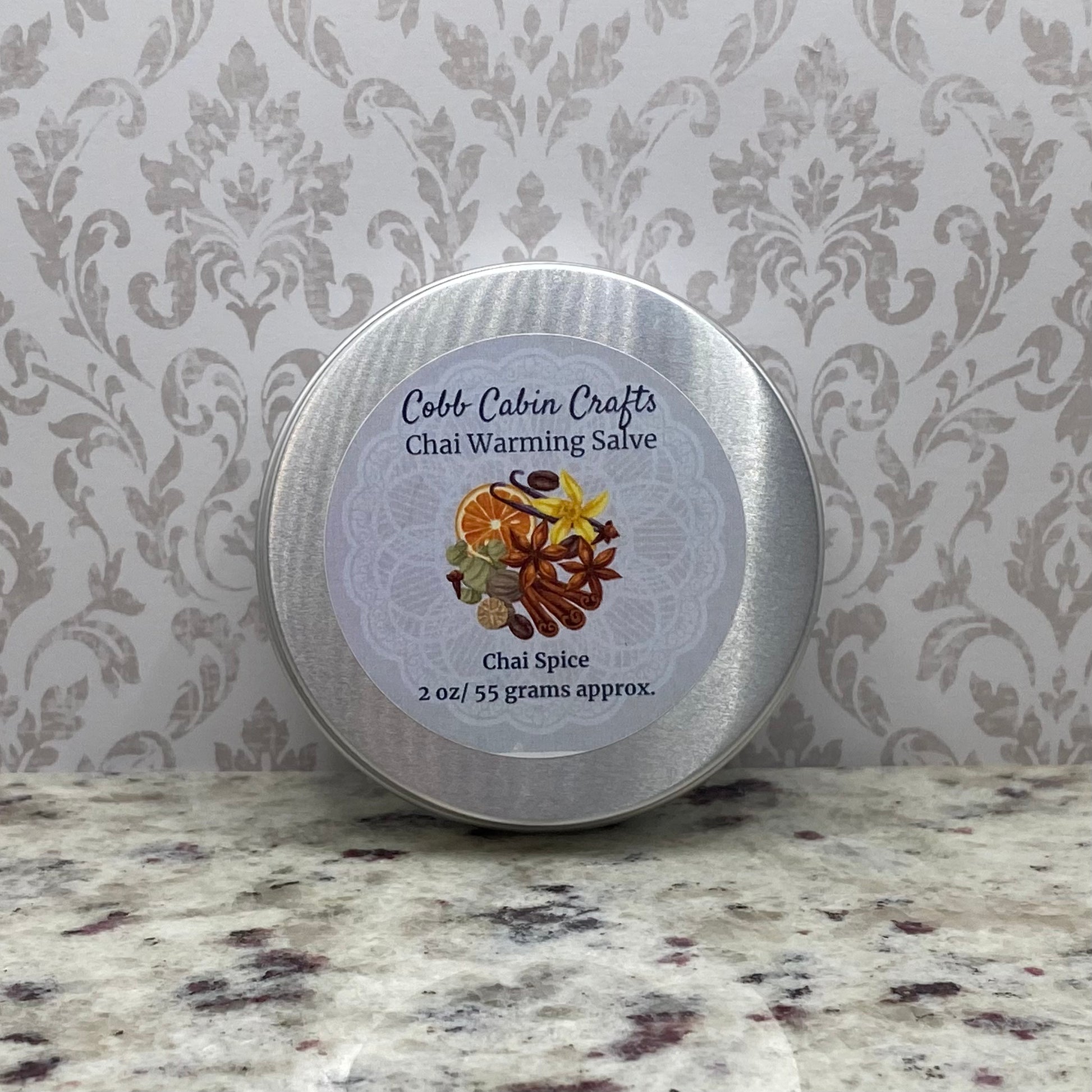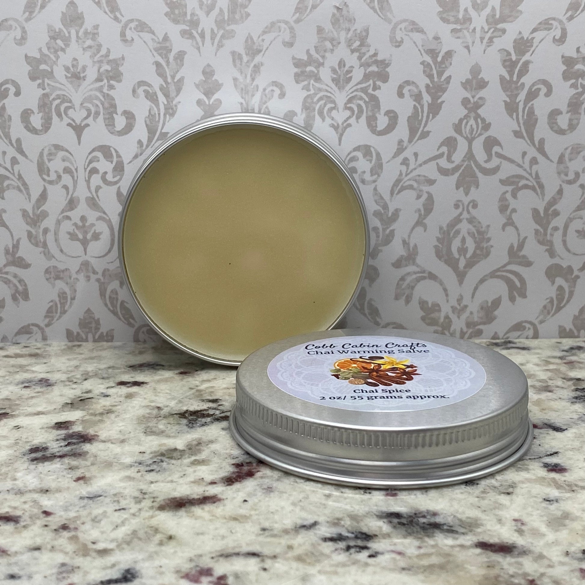 This chai-infused salve combines the rich, nourishing properties of chai-infused olive oil, coconut oil, shea butter, and beeswax with the therapeutic benefits of vanilla bean powder and essential oils of cinnamon, clove, cardamom, ginger, and fennel. It provides deep hydration and forms a protective barrier, making it ideal for treating dry or chapped skin. The anti-inflammatory and soothing properties of the ingredients help calm irritated skin, while the warming effects of cinnamon, clove, and ginger offer pain relief for sore muscles and joints. Additionally, the salve's antibacterial and antifungal properties help prevent infections, and its aromatic blend promotes relaxation and overall skin health. This versatile salve is perfect for maintaining healthy, moisturized, and protected skin.