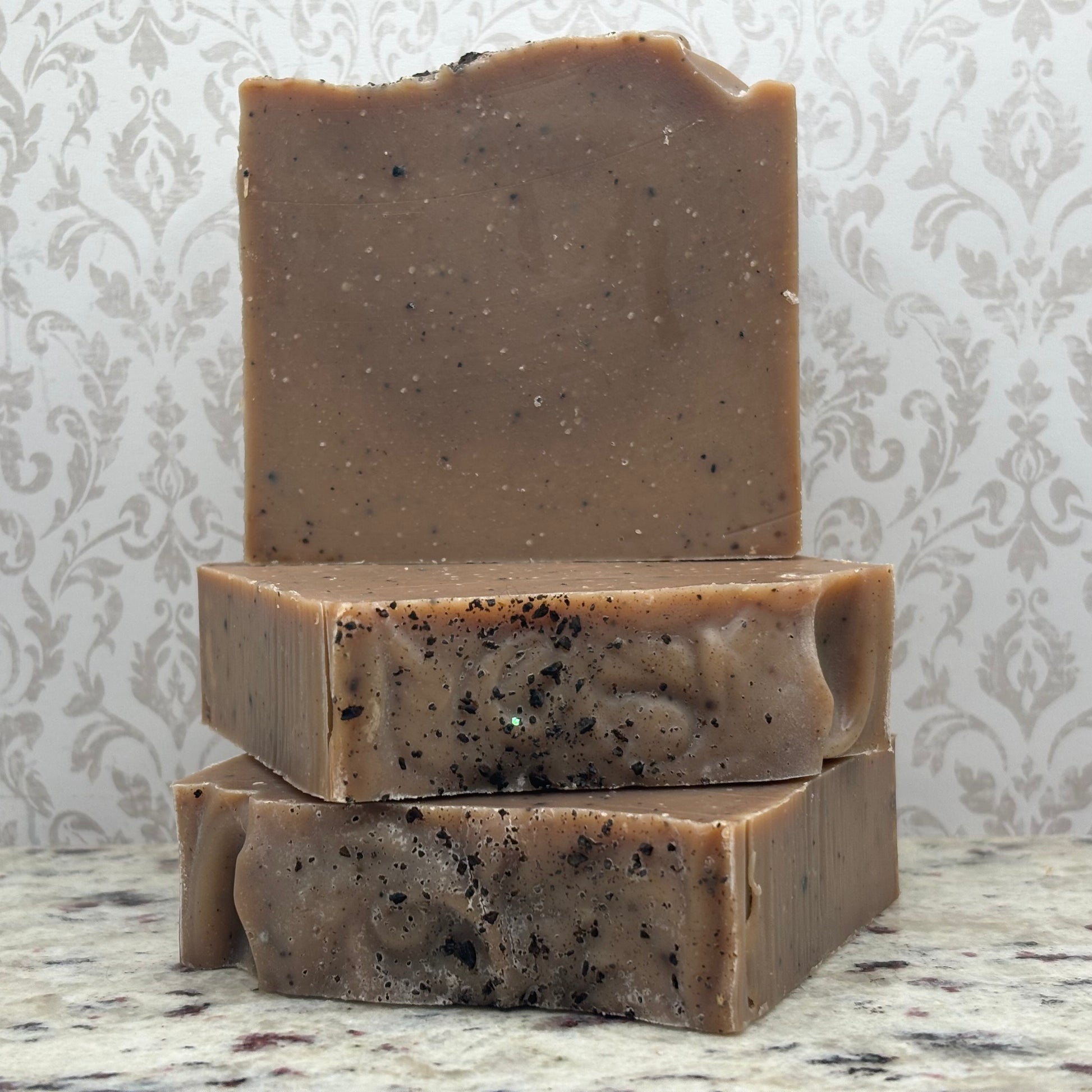 Contains: Coconut Oil, Palm Oil, Coffee, Lye, olive Oil, Fragrance, Pumice, Coffee Grounds