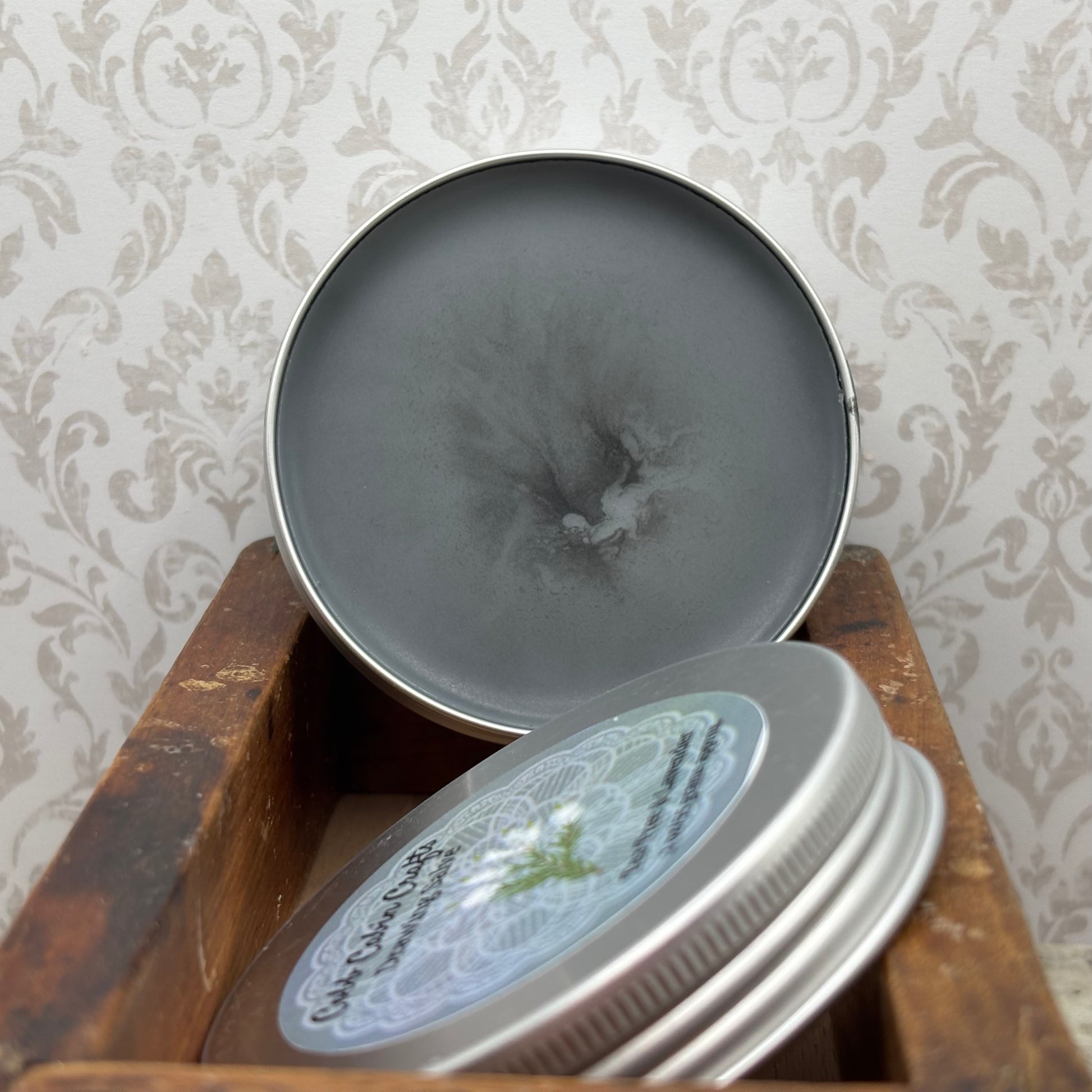 Ingredients: Plantain-infused olive oil, calendula-infused olive oil, coconut oil, castor oil, beeswax, activated charcoal, kaolin clay, arrowroot powder, lavender essential oil, tea tree essential oil.
