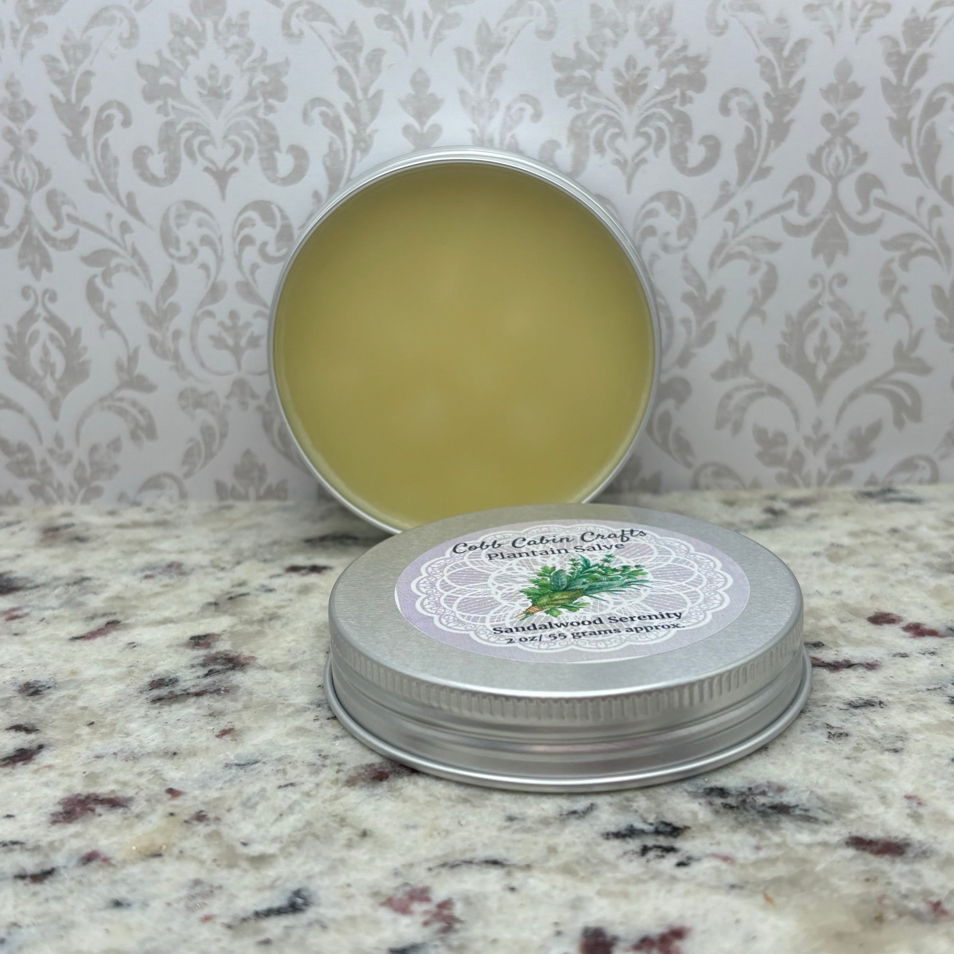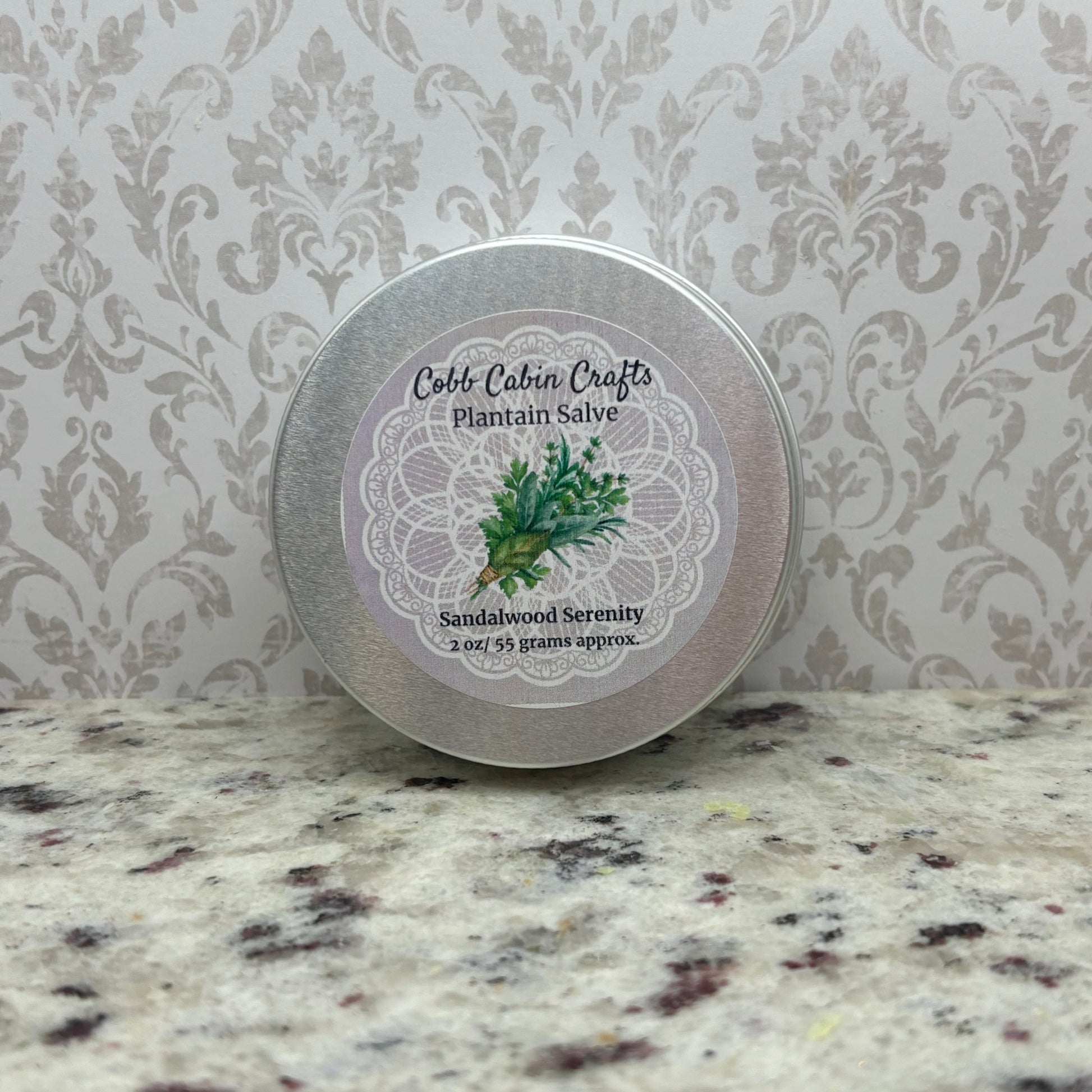This salve, featuring plantain-infused olive oil, beeswax, coconut oil, shea butter, frankincense, myrrh, and cedarwood essential oils, provides healing, moisturizing, and protective benefits. Plantain soothes irritated skin and promotes wound healing, while beeswax creates a protective barrier. Coconut oil and shea butter deeply moisturize and repair the skin. Frankincense and myrrh reduce inflammation, promote skin regeneration, and have antiseptic properties. Cedarwood calms and soothes the skin. This salve is excellent for wound healing, moisturizing dry skin, and soothing irritated or inflamed skin.