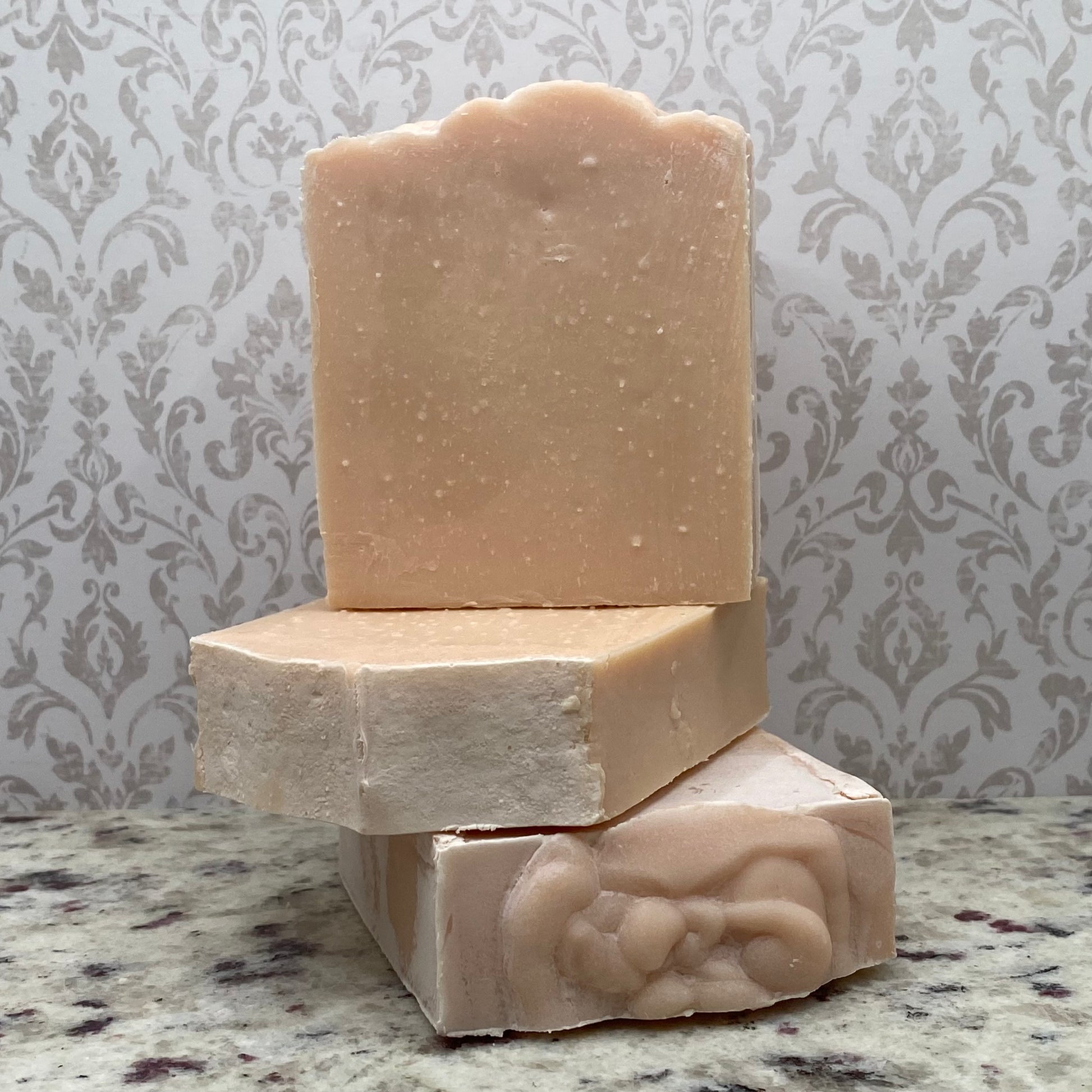 This extra gentle soap is perfect for babies (but is NOT tear free) and those with sensitive skin. It contains olive oil, coconut milk, tangerine essential oil, & clay. There is no artificial colorant added to this soap, the color is a result of the clay.